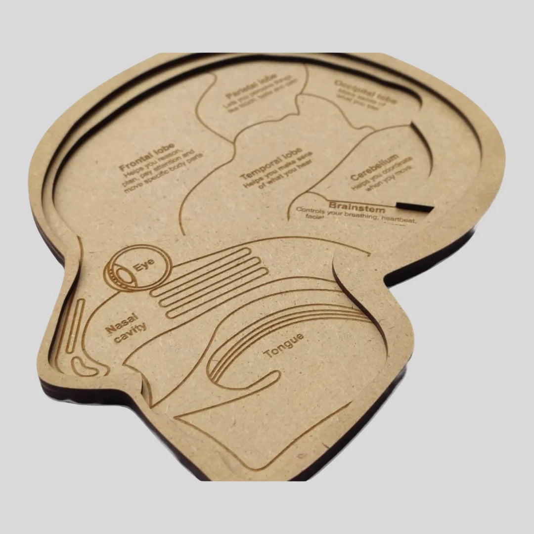 This is a Human Brain Anatomy Puzzle with detailed parts named within, designed for young kids to explore the sections of human brain and it’s placement in our body.